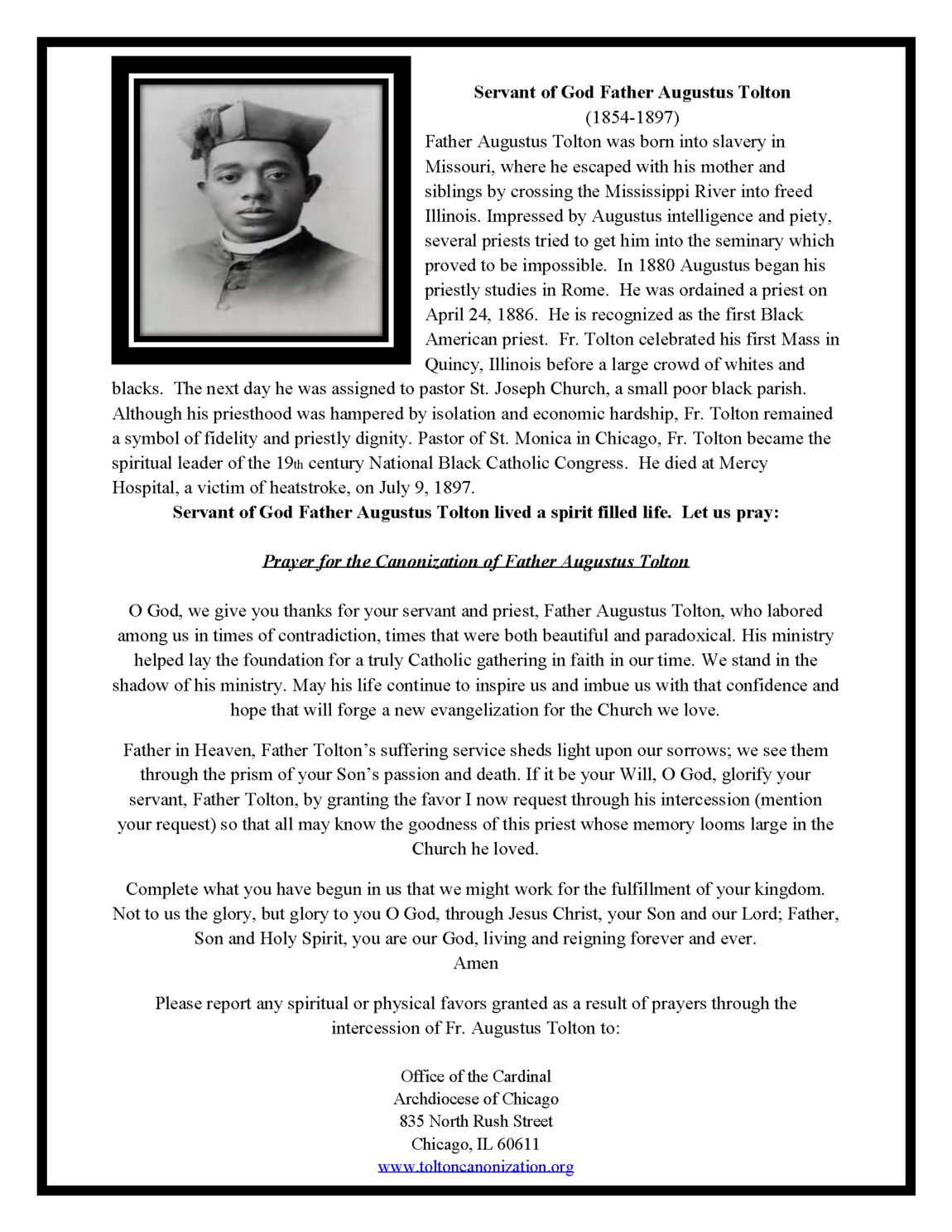 Posted August 12, 2020 7950 0 0 Father Augustus Tolton Related Posts Donation Page Steps to Sainthood Walking With The Saints Mother Mary Lange