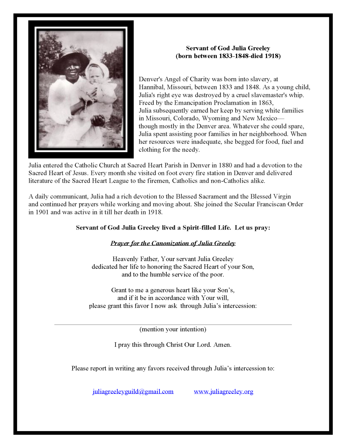 Posted August 12, 2020 8397 0 0 Julia Greeley Related Posts Donation Page Steps to Sainthood Walking With The Saints Mother Mary Lange