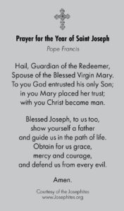 The prayer card is: 2 1/2 X 4 1/4 card will fit nicely into your wallet or can be used as a bookmark. We are pleased to offer this resources to celebrate The Year of Saint Joseph.
