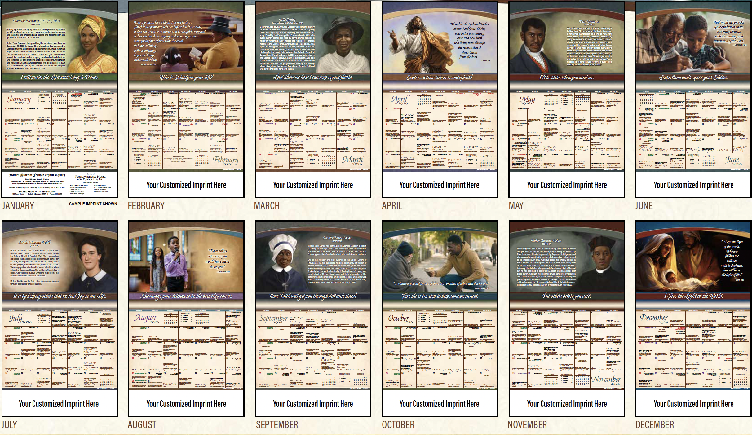 The 2026 calendar includes information about important dates in African American history. You also will find inspiring scripture and beautiful images on every page.
