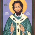 In this icon are present the symbols of a bishop’s staff and a snake. Legend holds that by Patrick’s authority the snakes were driven out of Ireland, a symbol of his power over evil. Patrick is pictured in his liturgical vestments, holding in his hand a clover which he used to teach about the Most Holy Trinity.